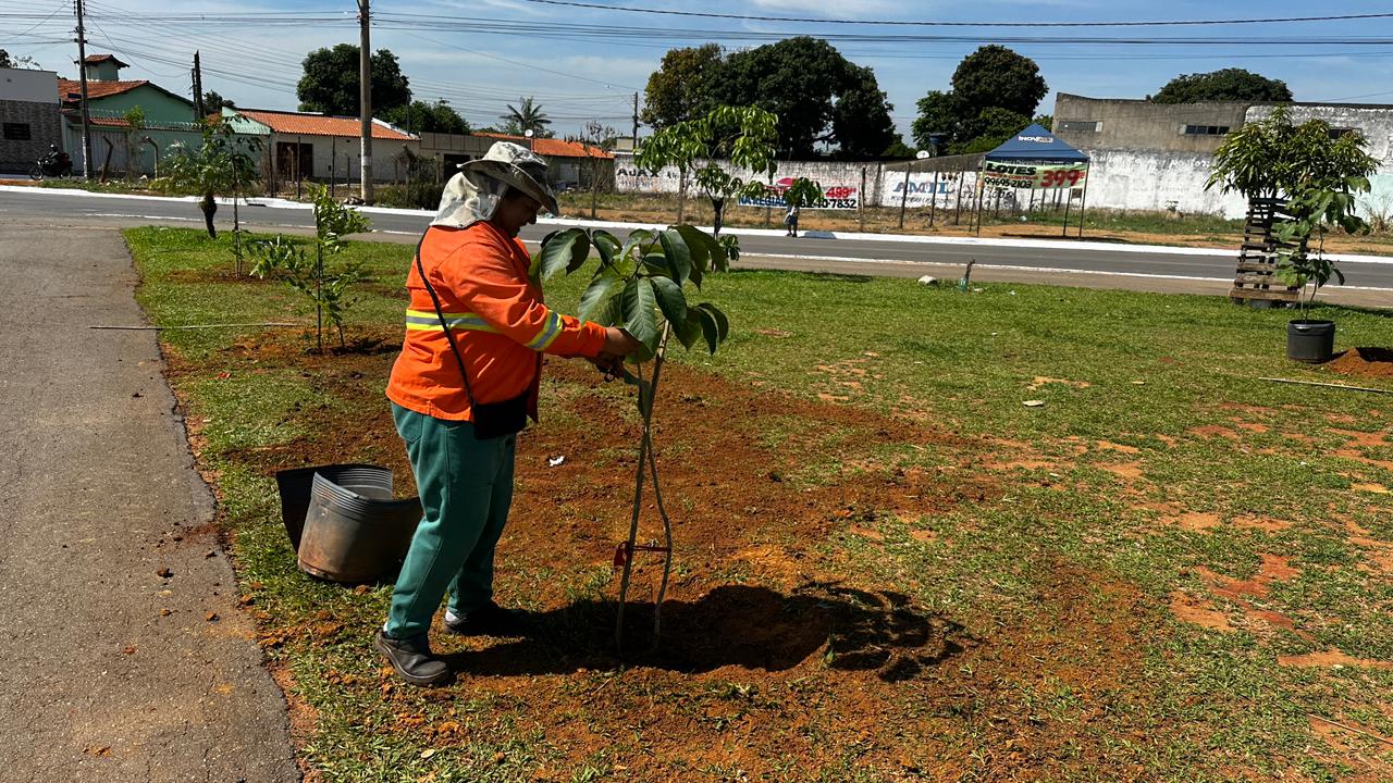 Na rotatória da Rua 50, no Setor Condomínio das Esmeraldas, o plantio inclui espécies como jacarandá-mimoso, ipê-roxo, pata-de-vaca, pau-formiga e acácia-chuva-de-ouro. De acordo com a Comurg, as árvores escolhidas não produzem frutos e não possuem raízes extensas, o que reduz riscos à infraestrutura urbana.