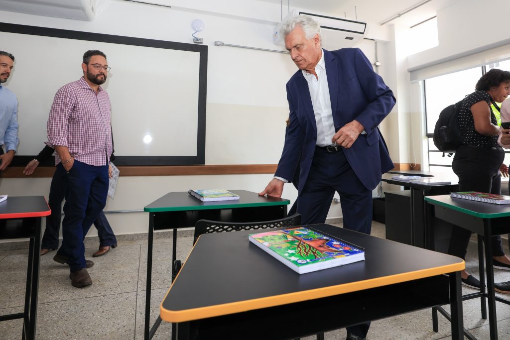 Durante a vistoria, Caiado percorreu salas de aula, quadra esportiva, cozinha, áreas de convivência e demais espaços da unidade. Ele destacou que o projeto vai além da recuperação do prédio escolar e contribui para a revitalização urbana da região central de Goiânia.