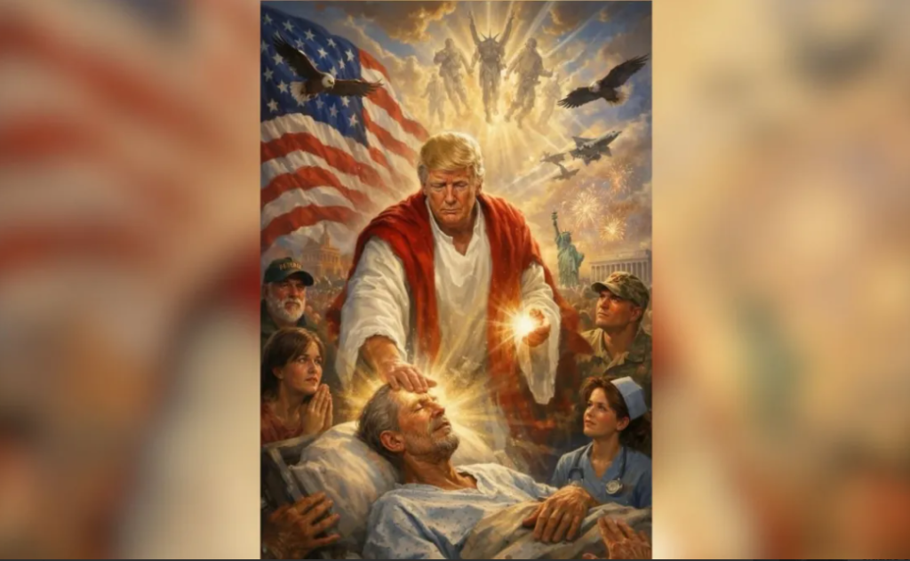 No início da semana, o presidente dos Estados Unidos, Donald Trump, publicou na rede social Truth Social, uma foto onde aparecia como uma figura semelhante a Jesus. A imagem gerada por inteligência artificial mostrava Trump vestido com uma túnica branca e vermelha. Na ilustração, as mãos do presidente emitiam luzes, e sua mão direita tocava a testa de um homem deitado em uma cama, vestido com roupa hospitalar.