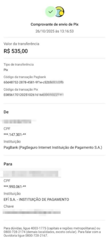Durante as investigações, outra vítima, um homem de 31 anos, relatou ter transferido R$ 535 por Pix ao golpista pela suposta compra de uma TV de 60 polegadas.