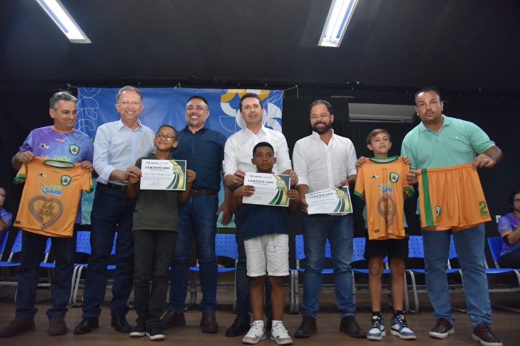 O prefeito de Aparecida de Goiânia, Leandro Vilela, entregou nesta quarta-feira (25) os uniformes aos atletas que irão representar o município na GO Cup 2026. Ao todo, 56 crianças e adolescentes — sendo 40 meninos e 16 meninas — participarão da competição por meio da Secretaria Municipal de Esportes.