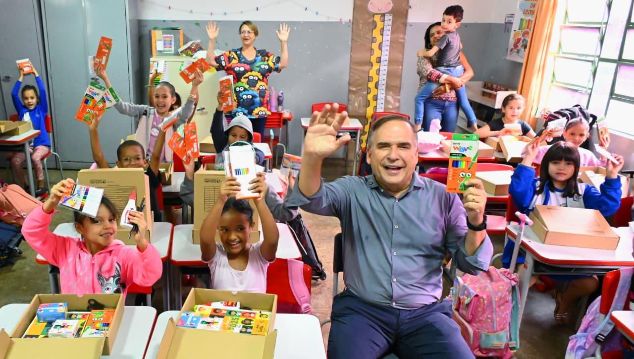 A secretária municipal de Educação, Giselle Faria, destacou que a entrega do material no início do ano letivo contribui para o engajamento dos estudantes e melhora as condições de aprendizagem.