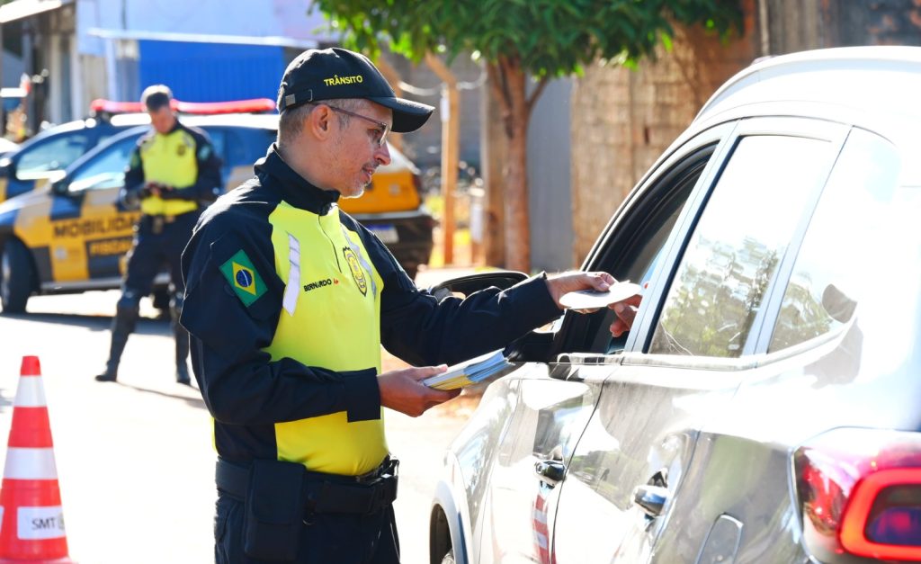 A blitz educativa acontece na Avenida C-107, próximo à Delegacia de Proteção à Criança e ao Adolescente (DPCA), no Jardim América.