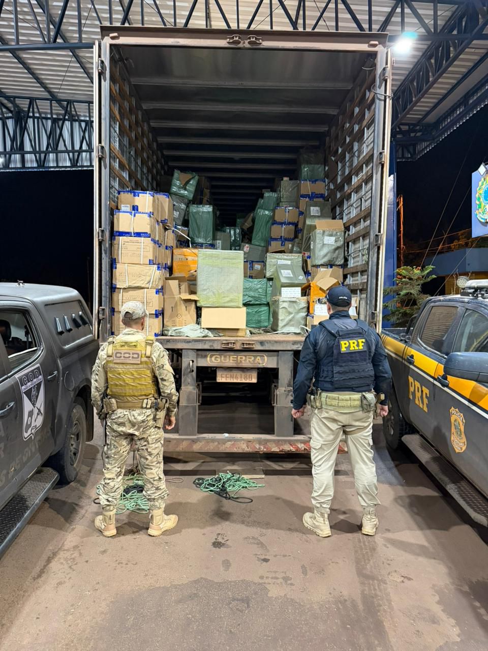 A Polícia Rodoviária Federal (PRF), em ação integrada com o Comando de Operações de Divisas (COD) da Polícia Militar de Goiás, realizou nesta terça-feira (3) a maior apreensão de produtos oriundos de contrabando e descaminho registrada no Brasil em 2026. A ocorrência foi registrada em Jataí, no sudoeste goiano.
