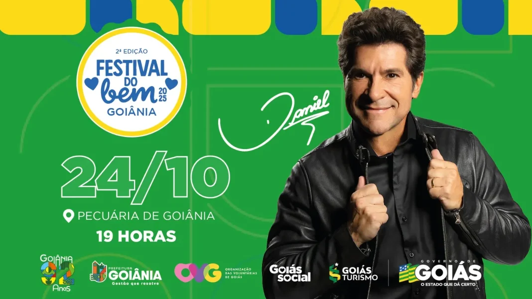 O cantor Daniel encerra, nesta sexta-feira (24), a programação do Festival do Bem, que integra as comemorações oficiais pelos 92 anos de Goiânia. O Governo de Goiás promove o evento com apoio da Prefeitura de Goiânia. Três noites de shows gratuitos acontecerão no Parque de Exposições.